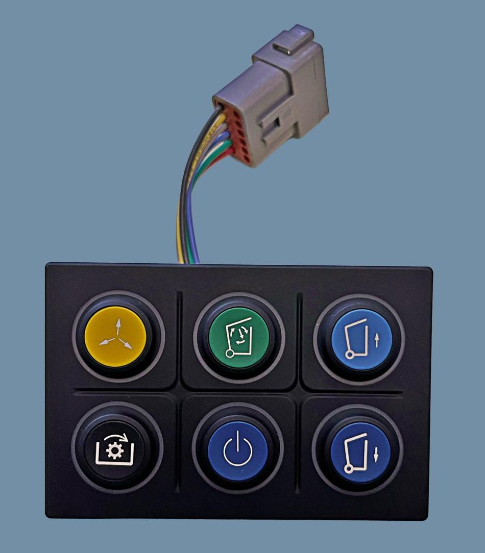 Parliamo di pulsantiere. Nel 2023 (ma forse anche da prima) abbiamo visto ad Ecomondo un nostro concorrente con una pulsantiera veramente bella. Linee pulite, colori sgargianti, si integrava proprio bene con il camion. Così lo faccio vedere ad uno dei miei tecnici, Michele. Lo guarda e mi dice: “guarda che secondo me non è a norma quella pulsantiera.”
